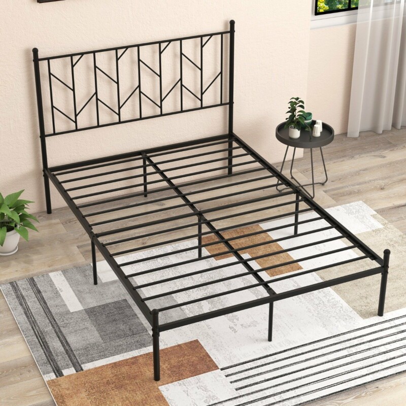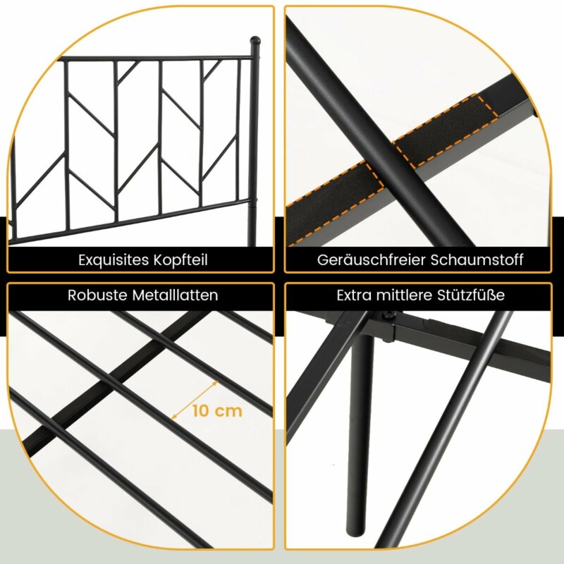 Costway Μεταλλικό Κρεβάτι Πλατφόρμας με Κεφαλάρι 360kg 197 x 141 x 113 cm Μαύρο HU10505DK-F