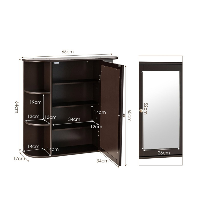 Καθρέπτης Μπάνιου με Ντουλάπι 66 x 16.7 x 63 cm Χρώματος Καφέ Costway JV10446BN