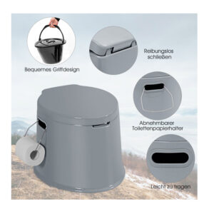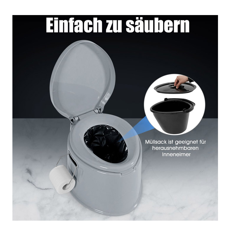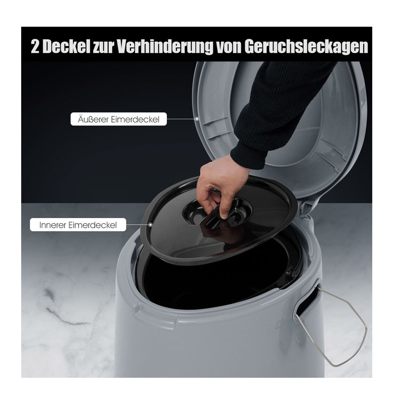 Η φορητή τουαλέτα, από την εταιρία Costway, έχει σχεδιαστεί ειδικά για υπαίθριες δραστηριότητες και καταλαμβάνει πολύ λίγο χώρο. Κατασκευασμένη από λείο, φιλικό προς το δέρμα υλικό PP, εξασφαλίζει ένα ευχάριστο επίπεδο άνεσης, όπως και στο σπίτι. Συνοδεύεται από αφαιρούμενο κουβά, ώστε να μπορείτε να τη χρησιμοποιείτε με απλές σακούλες απορριμμάτων. Ο εσωτερικός κάδος διαθέτει λαβή για εύκολη μεταφορά, η οποία σφραγίζεται χρησιμοποιώντας το εσωτερικό και το εξωτερικό καπάκι.