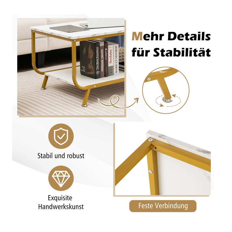 Το τραπέζι σαλονιού, από την εταιρία Costway, θα φέρει μια κομψή και πολυτελή πινελιά στο χώρο σας. Ο στιβαρός μεταλλικός σκελετός είναι εξαιρετικά σταθερός και ανθεκτικός στη σκουριά. Χάρη στους καμπυλωτούς μεταλλικούς σωλήνες που σχηματίζουν μια δομή υψηλής αντοχής με σφιχτή σύνδεση, μπορεί να υποστηρίξει μεγάλη χωρητικότητα φορτίου έως 50 Kg.