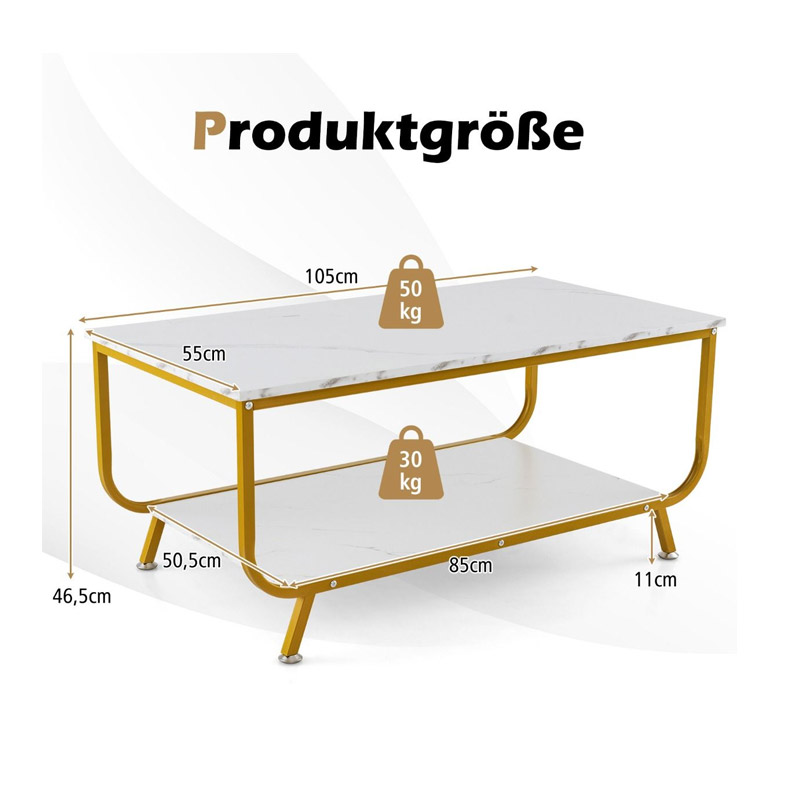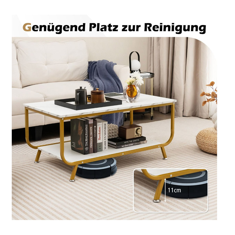 Με λειτουργικό σχεδιασμό 2 επιπέδων, διαθέτει φαρδιά επιφάνεια και ένα χαμηλότερο ράφι. Προσφέρει άφθονο αποθηκευτικό χώρο για φλιτζάνια καφέ, βιβλία, κουτιά αποθήκευσης, κορνίζες, φυτά και διακοσμητικά, καλύπτοντας διάφορες ανάγκες. Η επιφάνειά και το ράφι είναι από νοβοπάν με μοναδική μαρμάρινη εμφάνιση. Το κάτω ράφι απέχει 11 cm από το πάτωμα, δεν εμποδίζει τον καθαρισμό του δαπέδου, αλλά διευκολύνει τον καθαρισμό με ηλεκτρική σκούπα ρομπότ. Οι λεπτομερείς οδηγίες περιέχουν επίσης αριθμημένα βήματα συναρμολόγησης για προσανατολισμό.