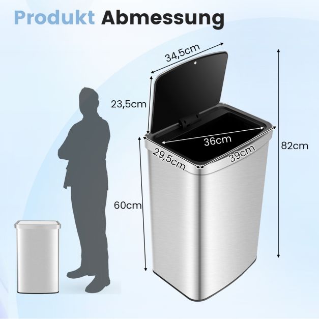 Στη λειτουργία αισθητήρα, μπορείτε να πετάξετε τα απορρίμματα χωρίς επαφή, καθώς το καπάκι ανοίγει και κλείνει αυτόματα. Τα φίλτρα ενεργού άνθρακα απορροφούν τις οσμές, ενώ το καπάκι τις κλείνει, αποφεύγοντας τη διάχυση δυσάρεστων μυρωδιών. Ο κάδος από ανοξείδωτο ατσάλι είναι ιδανικός για κάθε δωμάτιο του σπιτιού σας, είτε πρόκειται για την κουζίνα, το μπάνιο ή το σαλόνι.