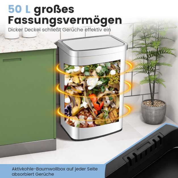 Αυτόματος Κάδος Απορριμμάτων 50 Lt με Αισθητήρα και Καπάκι COSTWAY GY10010SL