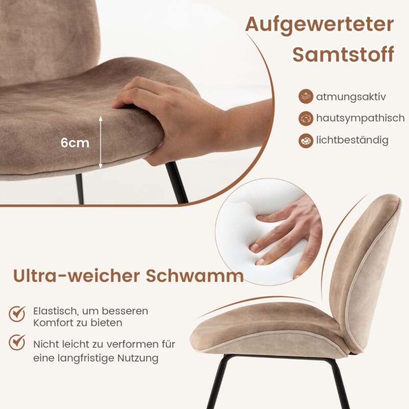 Απολαύστε την απόλυτη άνεση με το σετ καρεκλών κουζίνας μας, κατασκευασμένο από ανθεκτικά και άνετα υλικά. Συνδυάζει έναν ελαστικό αφρό που δεν παραμορφώνεται εύκολα με υψηλής ποιότητας βελούδο. Ζήστε την αναπνεύσιμη και φιλική προς το δέρμα υφή του.