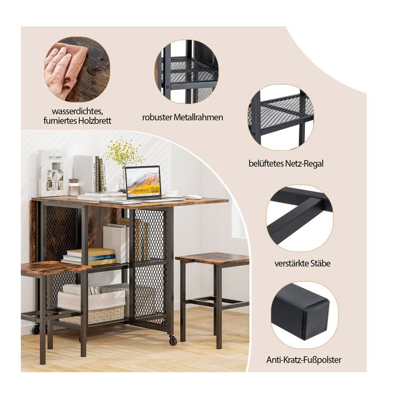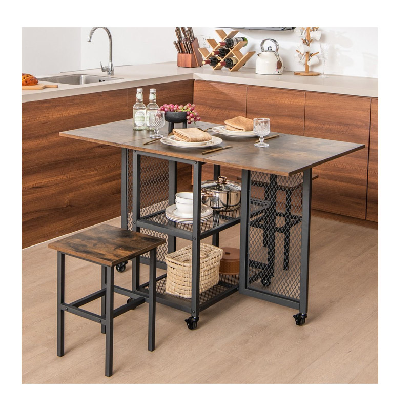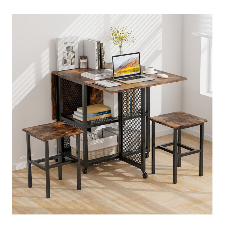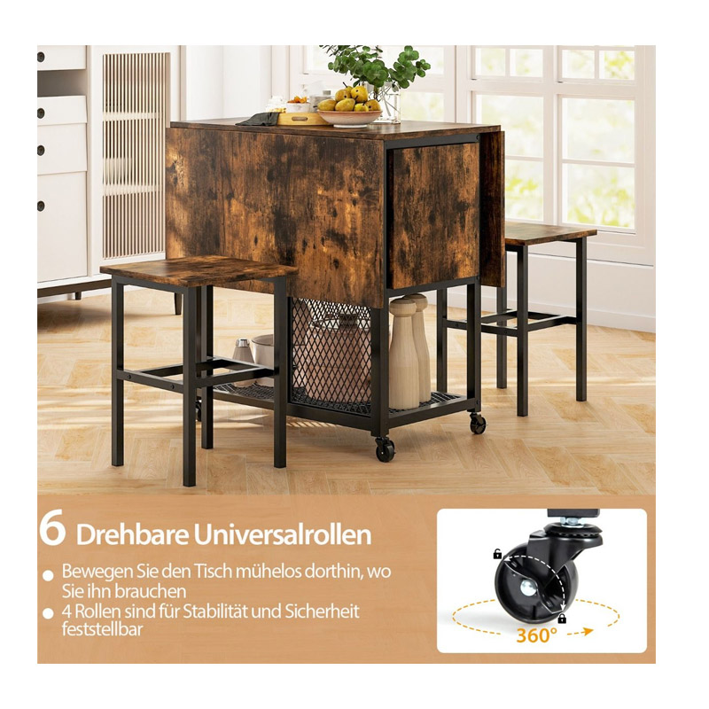 Το σετ, από την εταιρία Costway, περιλαμβάνει 1 επεκτεινόμενο τραπέζι και 2 σκαμπό. Το τραπέζι έχει σχεδιαστεί με 2 πτυσσόμενα φύλλα, επιτρέποντας 3 διαφορετικές διαμορφώσεις (πλήρως επεκτεινόμενο, 1 φύλλο αναδίπλωση και 2 φύλλα αναδίπλωση). Μπορεί να χρησιμοποιηθεί ως τραπεζαρία, γραφείο, καλύπτοντας διαφορετικές ανάγκες. Επιπλέον, υπάρχουν 2 ράφια αποθήκευσης κάτω από το τραπέζι, τα οποία μπορούν να χρησιμοποιηθούν για τη διατήρηση των αντικειμένων σε κοντινή απόσταση.