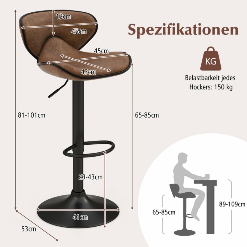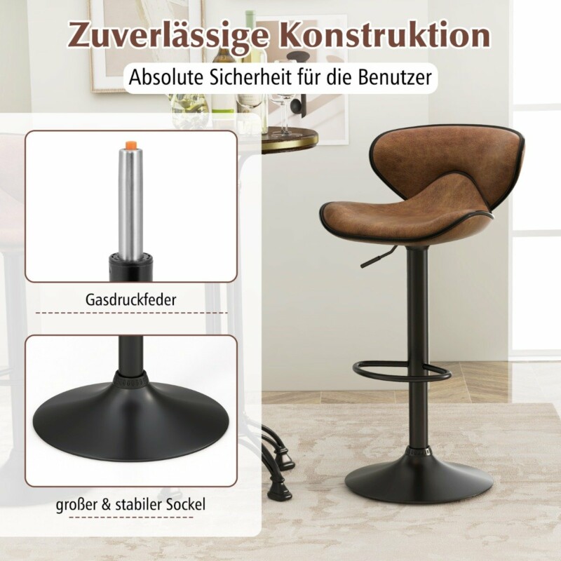 - Ρυθμιζόμενο σε ύψος περιστρεφόμενο σκαμπό μπαρ: Το σετ μας από 2 σκαμπό μπαρ μπορεί να ρυθμιστεί ελεύθερα σε ύψος (81-101 cm) για να ανταποκρίνεται σε διαφορετικά ύψη μπαρ. Τα σκαμπό επιτρέπουν περιστροφή 360°, ώστε να μπορείτε να γυρίσετε άνετα προς τους φίλους σας.