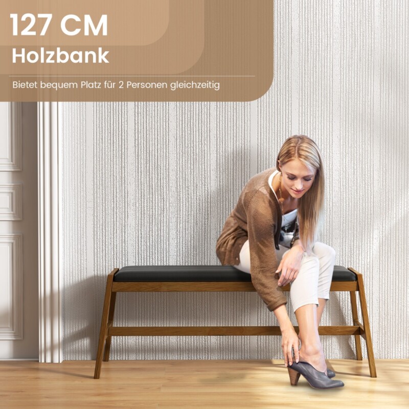 • Άνετη αίσθηση καθίσματος: Το ξύλινο παγκάκι μήκους 127 cm προσφέρει άνετο χώρο για 2 άτομα ταυτόχρονα, καθιστώντας το ιδανική λύση καθίσματος για τραπεζαρίες, σαλόνια ή χώρους εργασίας. Το επενδυμένο κάθισμα με μαλακή γέμιση σφουγγαριού προσφέρει άνετη και υποστηρικτική αίσθηση.