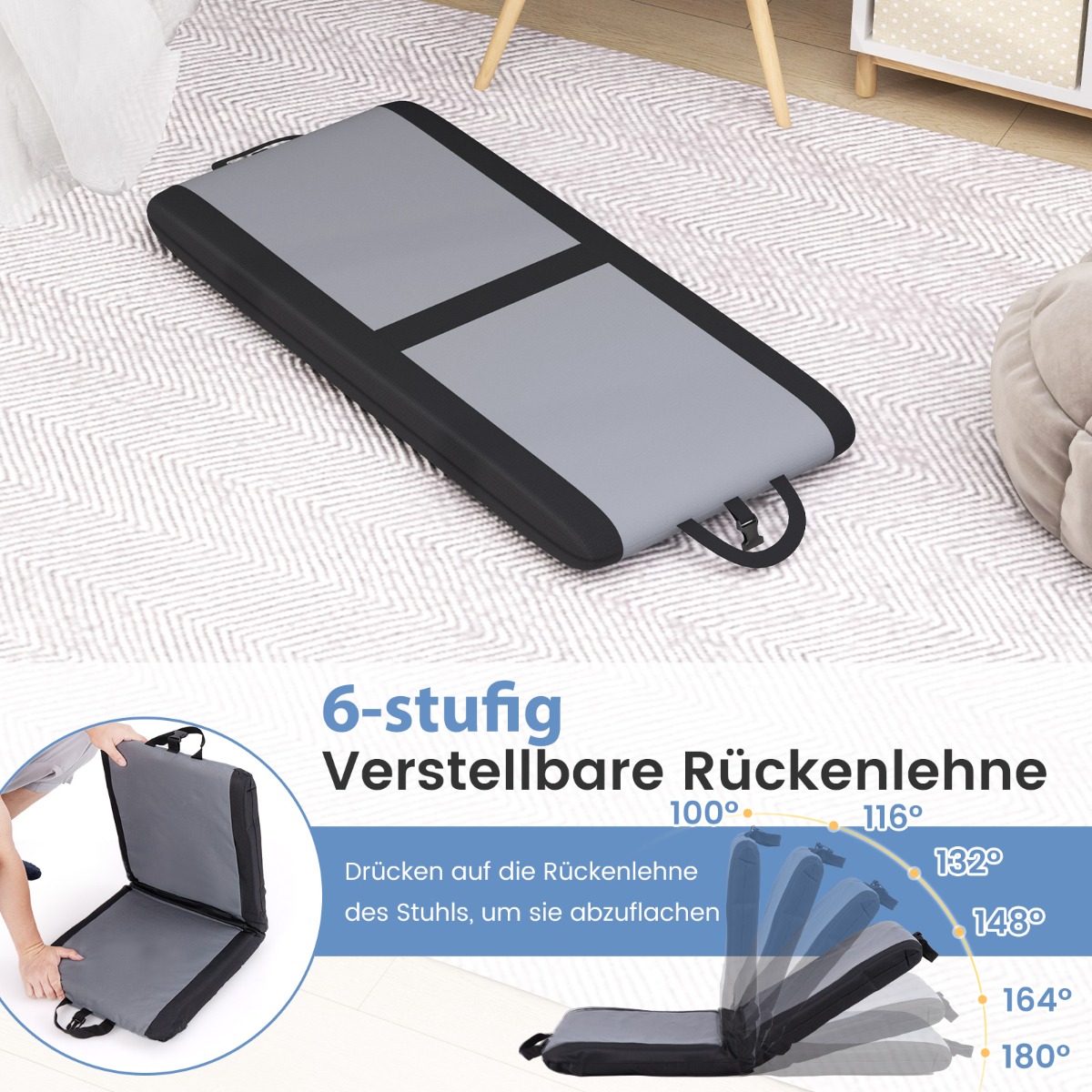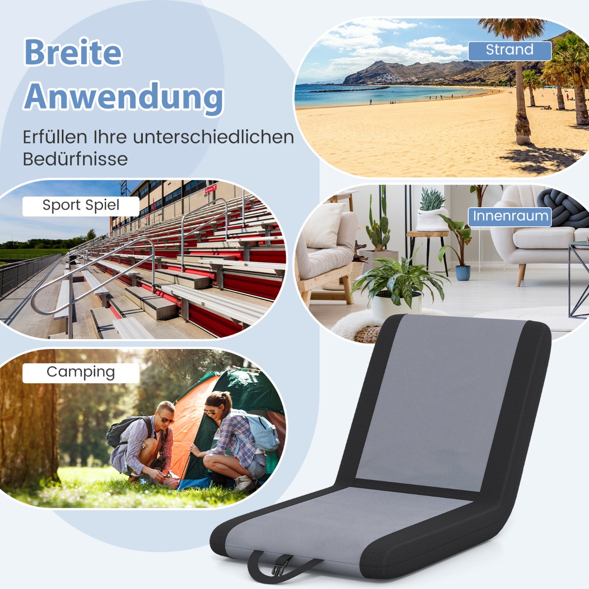 - Ρύθμιση 6 επιπέδων: Με 6-επίπεδη ρυθμιζόμενη πλάτη, αυτό το κάθισμα σας επιτρέπει να βρείτε την τέλεια γωνία για να παρακολουθήσετε συναρπαστικούς αγώνες ποδοσφαίρου ή ήσυχες συναυλίες σε εξωτερικούς χώρους. Περιλαμβάνει επίσης θέση 180°.