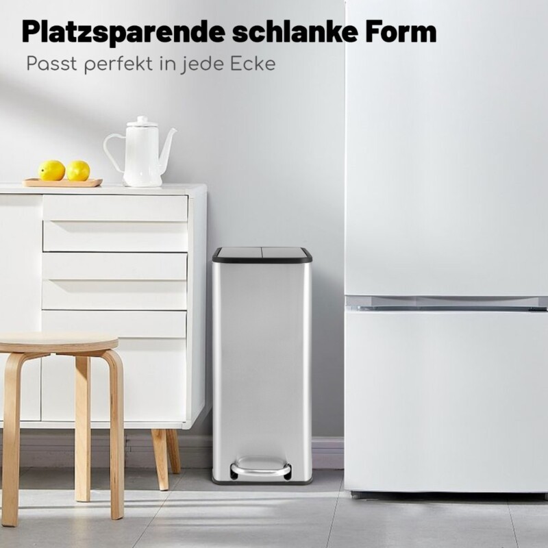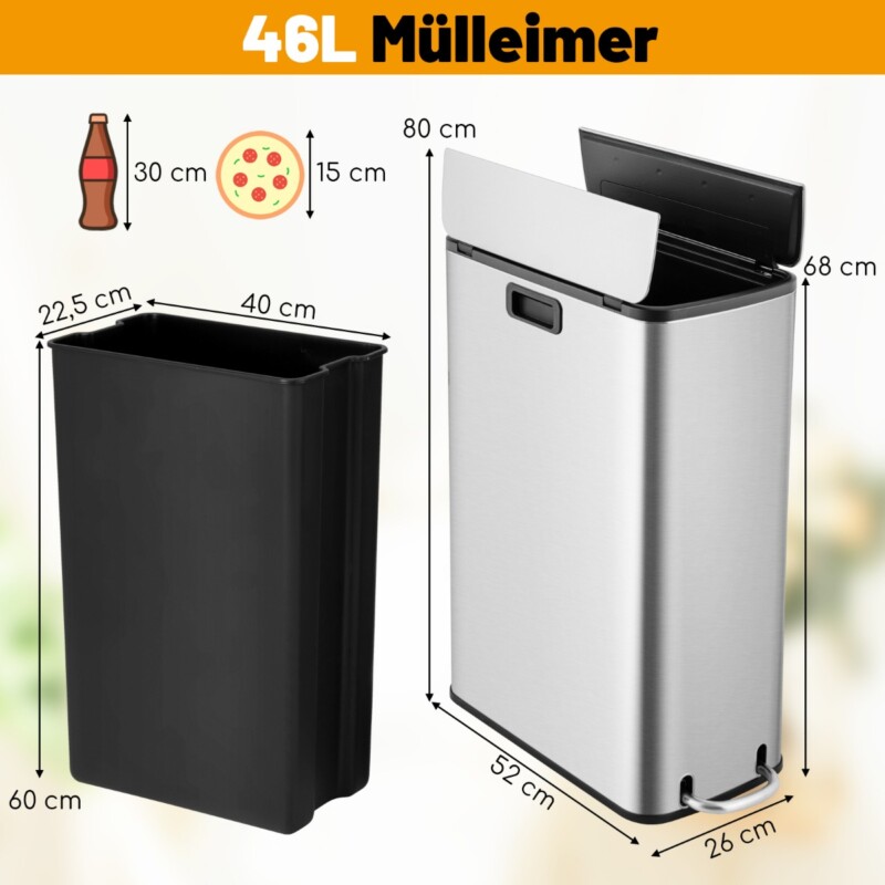 Ανακαλύψτε την ευκολία του κάδου απορριμμάτων 46 λίτρων, σχεδιασμένου για να κάνει την αποκομιδή απορριμμάτων μια απλή και καθαρή διαδικασία. Με το πεντάλ ποδιού, μπορείτε να ανοίξετε τον κάδο χωρίς να χρησιμοποιήσετε τα χέρια σας, ενώ ο αφαιρούμενος εσωτερικός κάδος προστατεύει από διαρροές και λεκέδες.