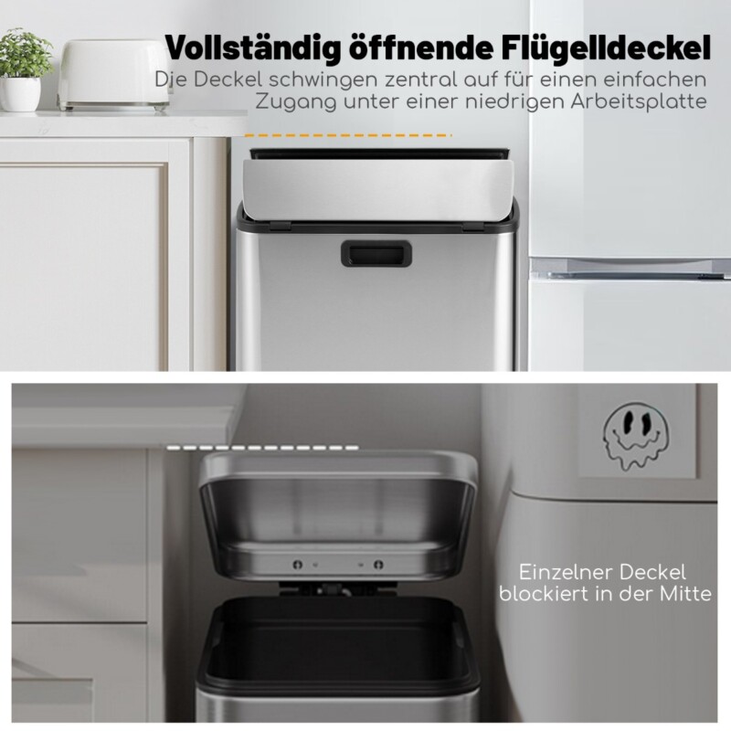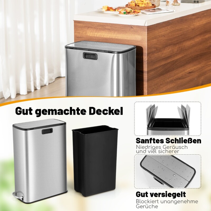 Costway 46L Κάδος Απορριμμάτων από Ανοξείδωτο Ατσάλι με Καπάκι Soft-Closing & Εσωτερικό Κάδο GY10014SL