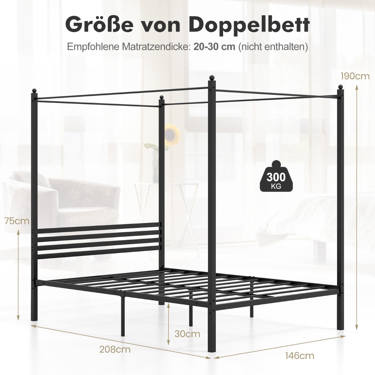 Διακοσμήστε το υπνοδωμάτιό σας με αυτό το μεταλλικό κρεβάτι με ουρανό! Μπορείτε να κρεμάσετε διακοσμητικές κουρτίνες και φώτα στους στύλους για να δημιουργήσετε το δικό σας ρομαντικό παλάτι. Το γοητευτικό κεφαλάρι με λάττες βελτιώνει όχι μόνο την εμφάνιση αλλά προσφέρει και στήριξη όταν χαλαρώνετε με ένα βιβλίο. Το κρεβάτι στηρίζεται από ομοιόμορφα κλειστές μεταλλικές λάττες και χαρακτηρίζεται από εξαιρετική αντοχή και ανθεκτικότητα στην κάμψη. Επιπλέον, τα μεσαία μεταλλικά πόδια βελτιώνουν τη σταθερότητα και τα αντιολισθητικά μαξιλαράκια προστατεύουν τα πατώματά σας. Ο γενναιόδωρος αποθηκευτικός χώρος κάτω από το κρεβάτι συμβάλλει στη διατήρηση ενός τακτοποιημένου και οργανωμένου υπνοδωματίου. Συνολικά, αυτό το καλοσχεδιασμένο κρεβάτι με ουρανό προσθέτει μια πινελιά κομψότητας και ζεστασιάς στον χώρο σας.