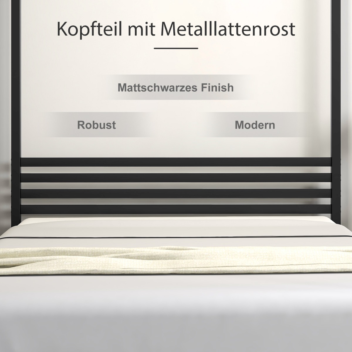- Στιβαρή Μεταλλική Κατασκευή: Εξοπλισμένο με ισχυρές μεταλλικές λάττες, αυτό το κρεβάτι αντέχει έως 300 kg και προσφέρει σταθερή βάση για το στρώμα σας, χωρίς να απαιτείται κουτί ελατηρίων. Ο αθόρυβος αφρός στο μεταλλικό στήριγμα εξασφαλίζει αδιάκοπο ύπνο χωρίς ενοχλητικά τριξίματα.