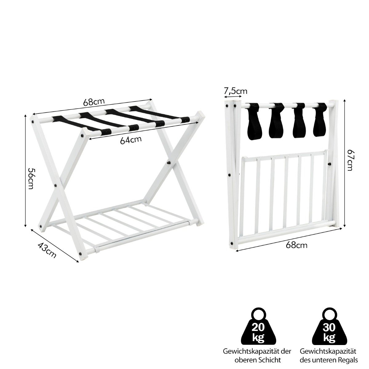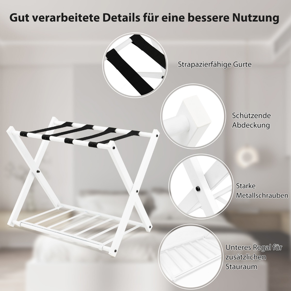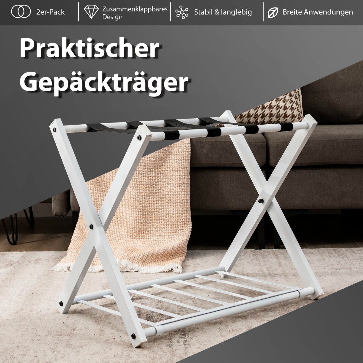 Costway Σετ 2 τεμαχίων αναδιπλούμενη βάση αποσκευών με σχέδιο δύο επιπέδων λευκό