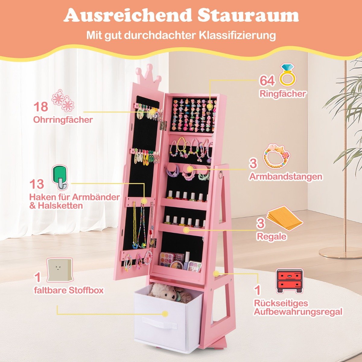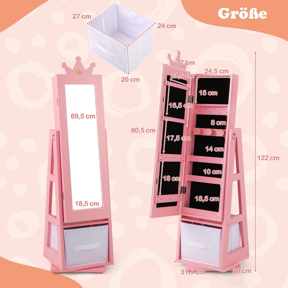 Costway Παιδική Ντουλάπα Κοσμημάτων με Ολόσωμο Καθρέφτη και Περιστρεφόμενη Βάση HY10321PI