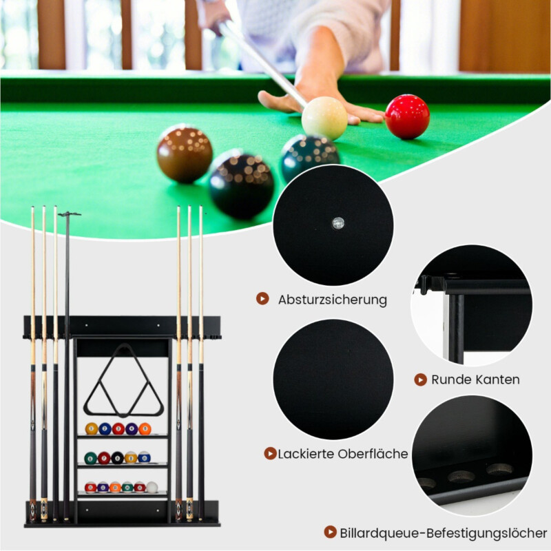 Ράφι Μπιλιάρδου Τοίχου Ξύλινο για 8 Στέκες & 15 Μπάλες 79 x 8 x 91cm JV12230BK Costway