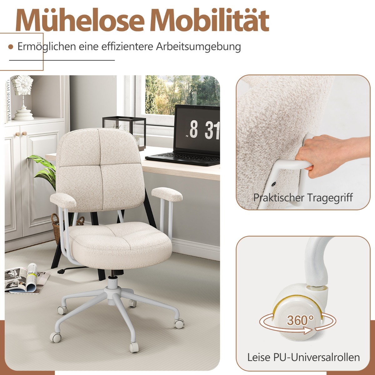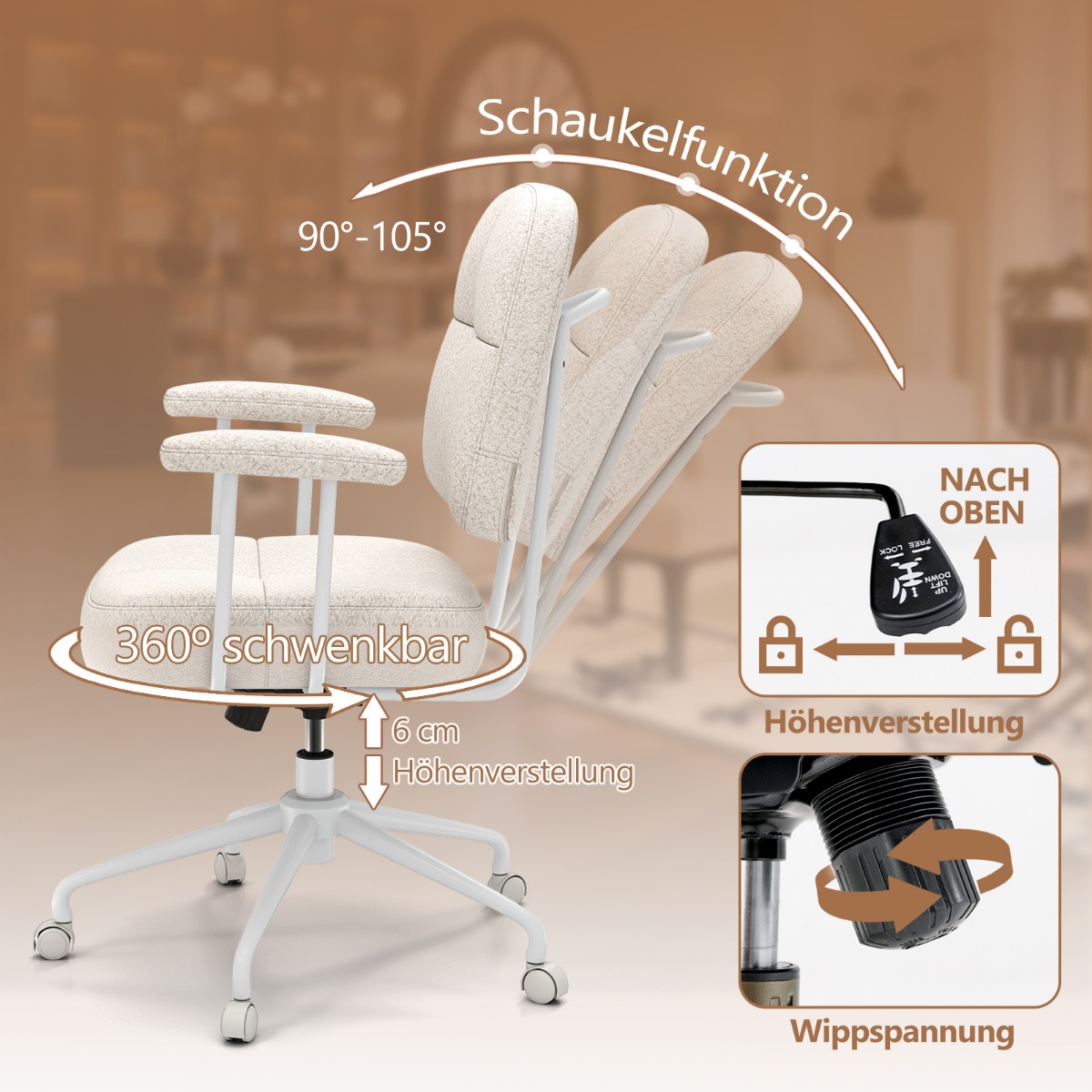 Costway Εργονομική Περιστρεφόμενη Καρέκλα Γραφείου με Μπράτσα & Ρόδες, Μπεζ CB10833BE