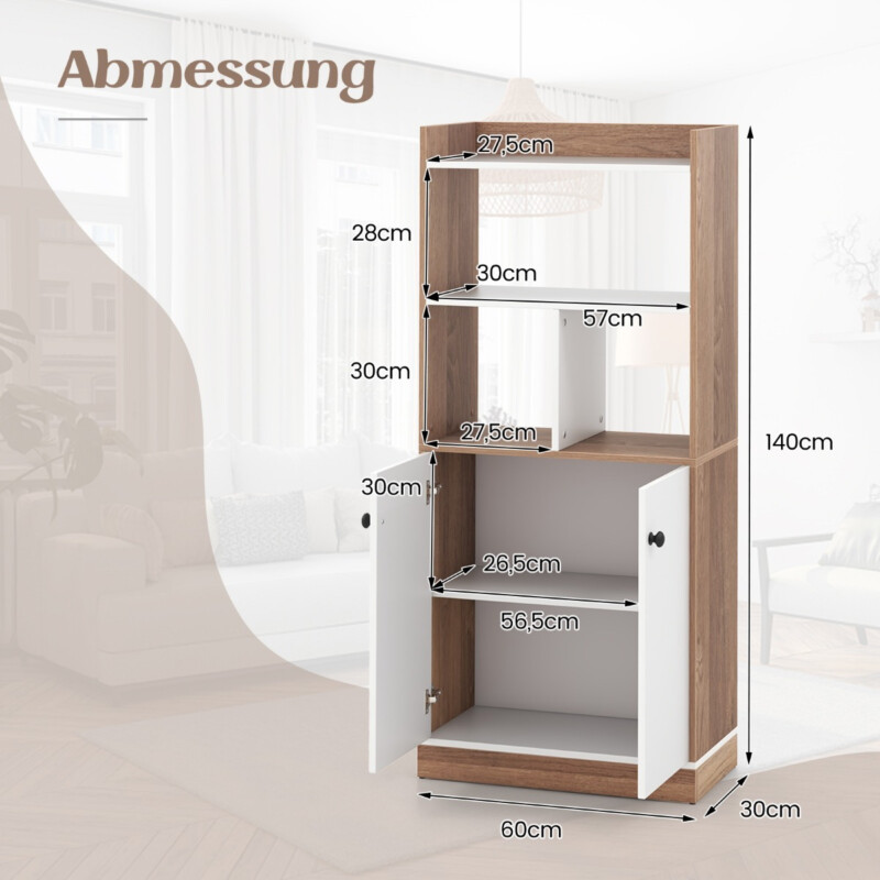 Costway Ράφι βιβλιοθήκης με διπλή πόρτα, 3 επιπέδων, με ανοιχτά ράφια, 60 x 30 x 140 εκ. JV12527