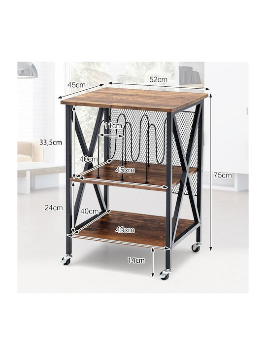 Costway Τροχήλατη Καφέ Ραφιέρα 3 Επιπέδων 52x45x75 cmJV12662DE-CF