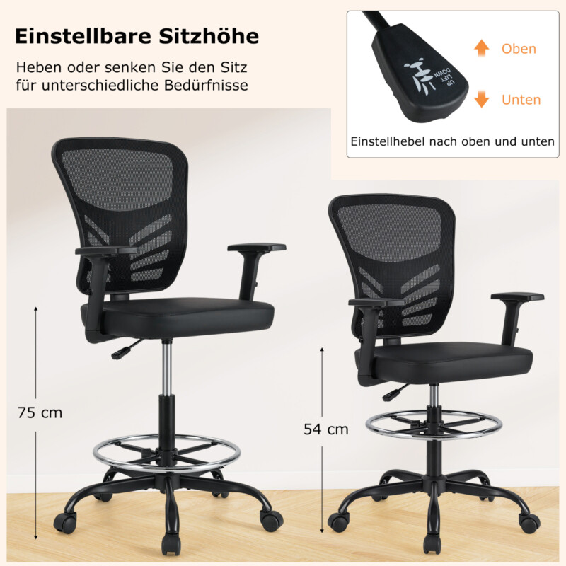 - Ρυθμιζόμενο Καθιστό Ύψος (54-75 εκ): Προσαρμόστε το ύψος του καθίσματος σύμφωνα με τις ανάγκες σας, για τέλεια εφαρμογή σε διαφορετικά ύψη γραφείων.