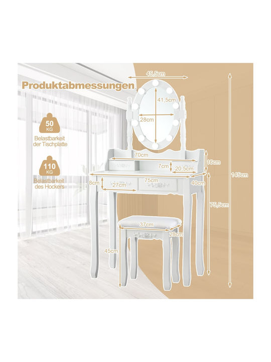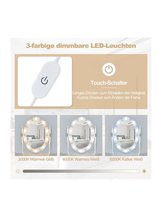 Αναδείξτε την ομορφιά σας με αυτό το κομψό σετ τουαλέτας μακιγιάζ, σχεδιασμένο με 10 LED φώτα και έναν άνετο σκαμπό. Τα φώτα διαθέτουν 3 χρωματικούς τρόπους και ρυθμιζόμενη φωτεινότητα για να καλύψουν κάθε σας ανάγκη.