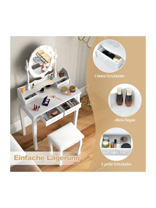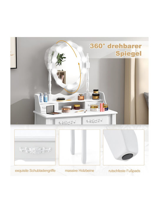 Costway Τουαλέτα Μακιγιάζ με LED Φωτισμό Ρυθμιζόμενης Φωτεινότητας με 4 Συρτάρια Λευκή HU11087DE-WH