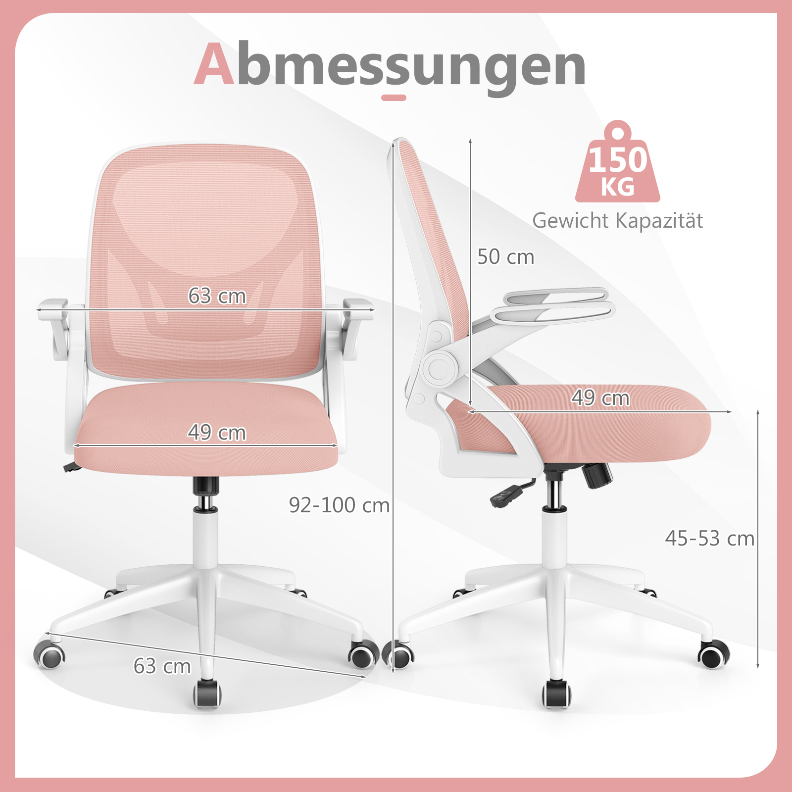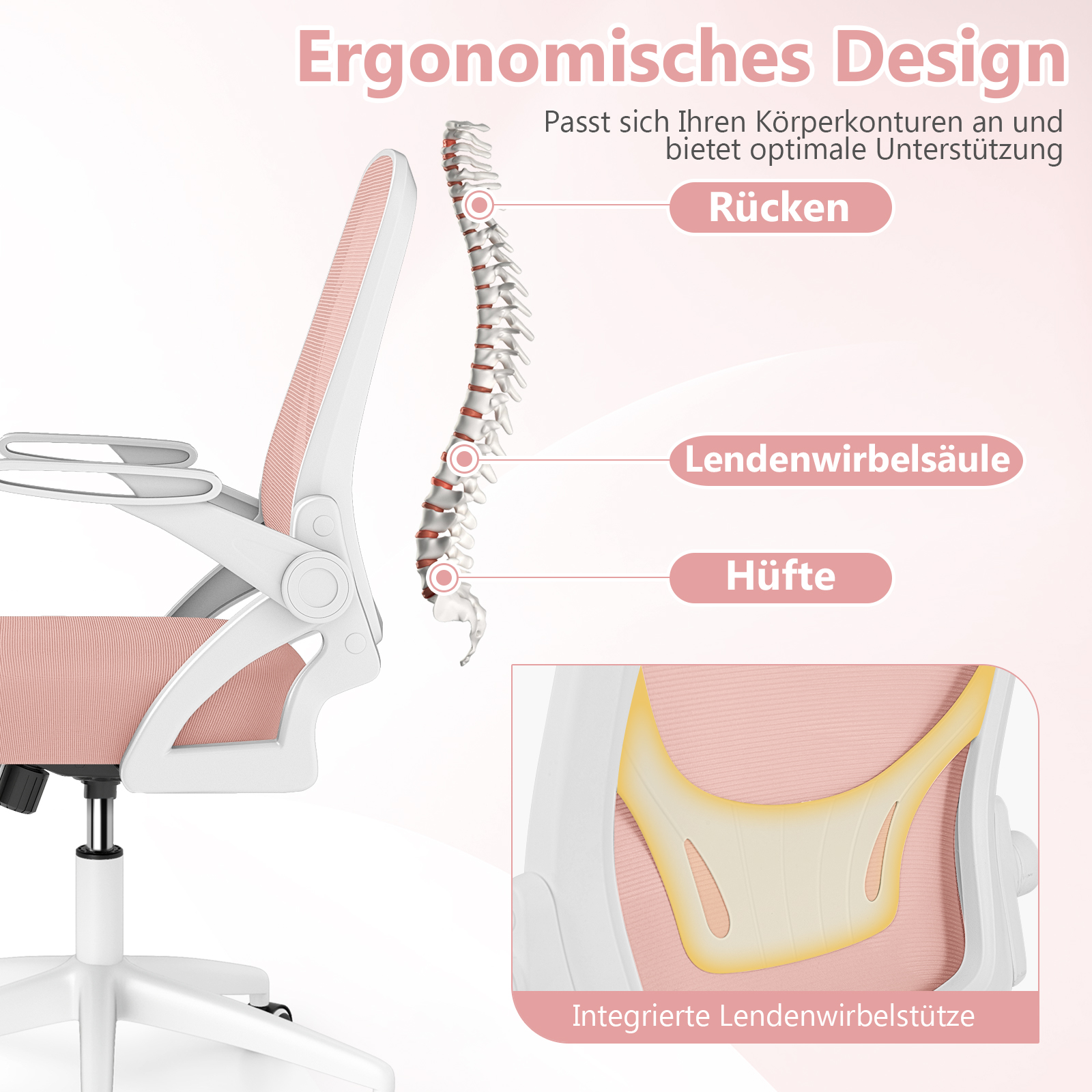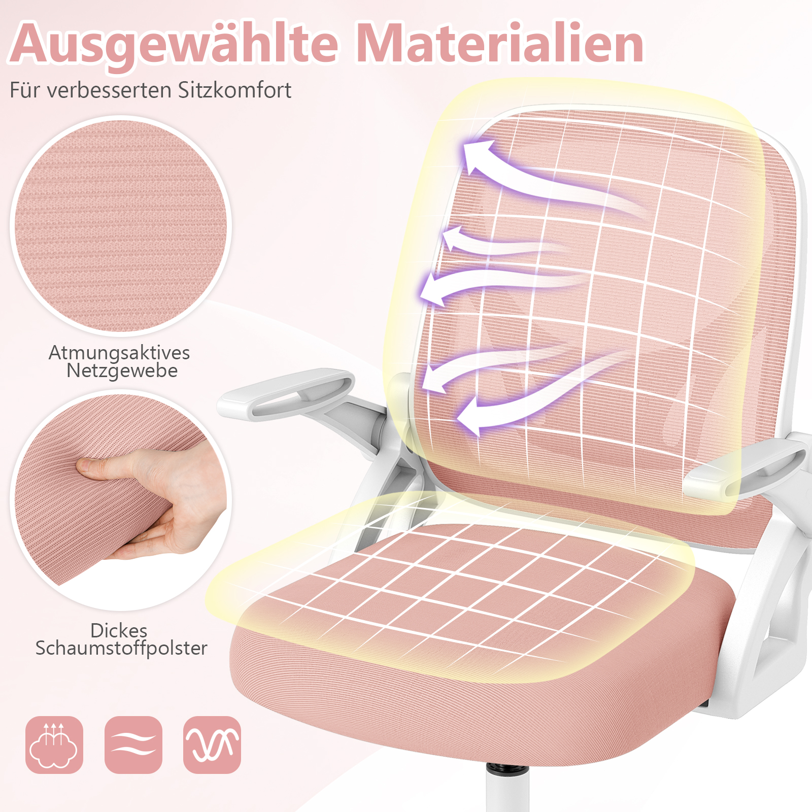 Costway Εργονομική Καρέκλα Γραφείου με Αναδιπλούμενα Μπράτσα και Λειτουργία Κλίσης Ροζ CB10935PI