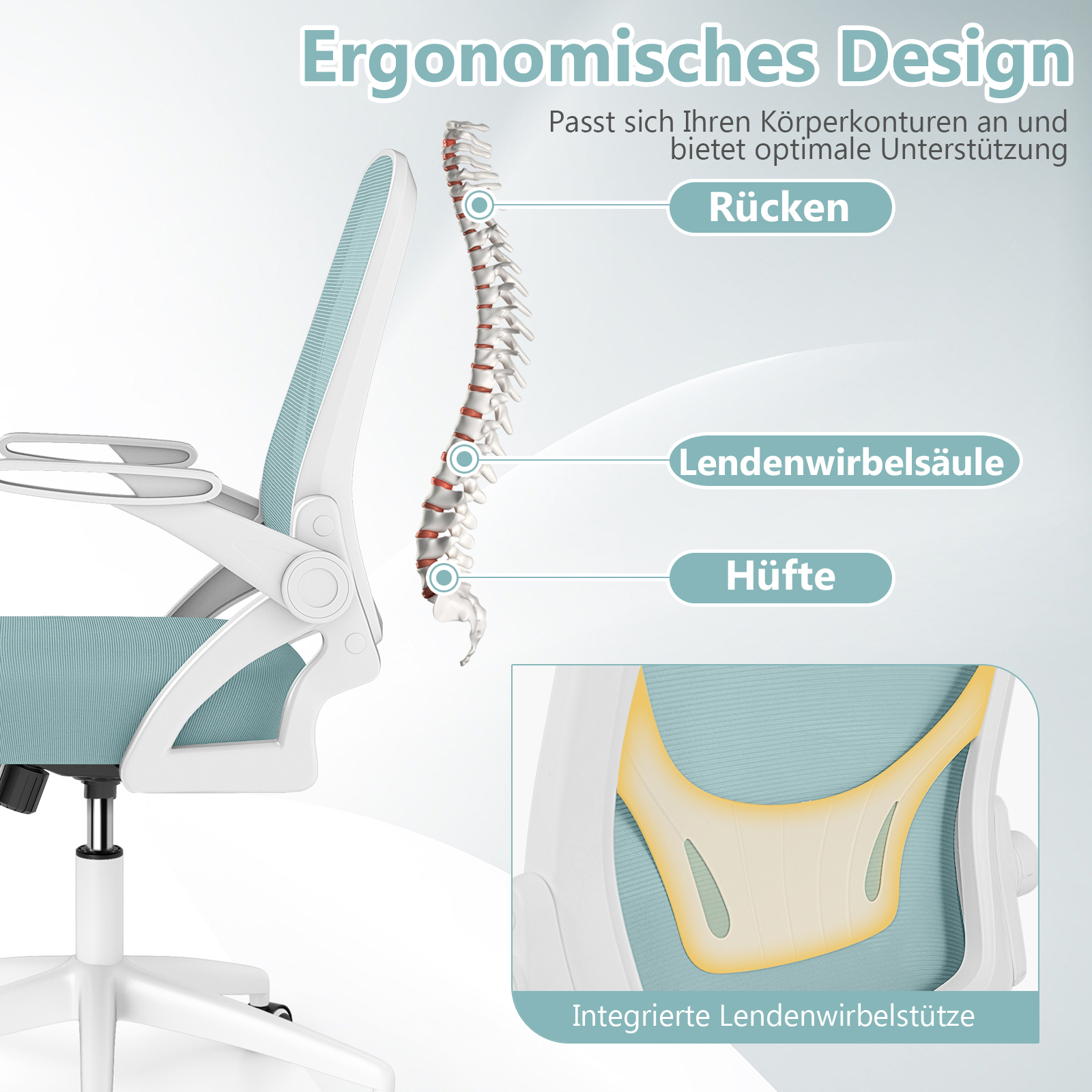 Σχεδιασμένη με καμπυλωτή πλάτη σε σχήμα S και ενσωματωμένη οσφυϊκή υποστήριξη, για να διατηρείτε μια τέλεια στάση σώματος. Νιώστε τη διαφορά με το δροσερό, διαπνέον υφασμάτινο δίχτυ και την πυκνή μαξιλαροθήκη αφρώδους υλικού, που μετατρέπουν ατελείωτες ώρες σε ξεκούραστο χρόνο! Κερδίστε χώρο με στυλ χάρη στις έξυπνες, 90° πτυσσόμενες βραχίονες και απολαύστε την ελευθερία κίνησης με ρυθμιζόμενο ύψος καθίσματος, λειτουργία αιώρησης και ομαλή περιστροφή 360°. Κατασκευασμένο σε μια ισχυρή βάση, αρκετά ανθεκτική για να αντέξει έως και 150 κιλά, είναι ο αξιόπιστος συνεργάτης εργασίας που περιμένατε!