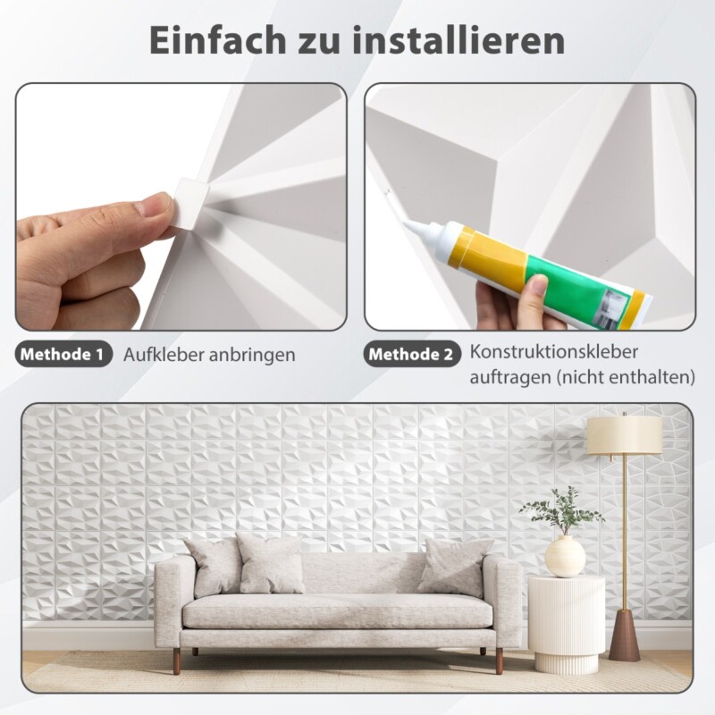 - Ανεπανάληπτα εύκολη εγκατάσταση: Δεν απαιτούνται επαγγελματίες! Αυτά τα διακοσμητικά πάνελ τοίχου έρχονται με κολλητικές ταινίες για γρήγορη και εύκολη εγκατάσταση. Mεταμορφώστε τους τοίχους σας σε χρόνο μηδέν και απολαύστε την ικανοποίηση μιας καλά εκτελεσμένης δουλειάς.