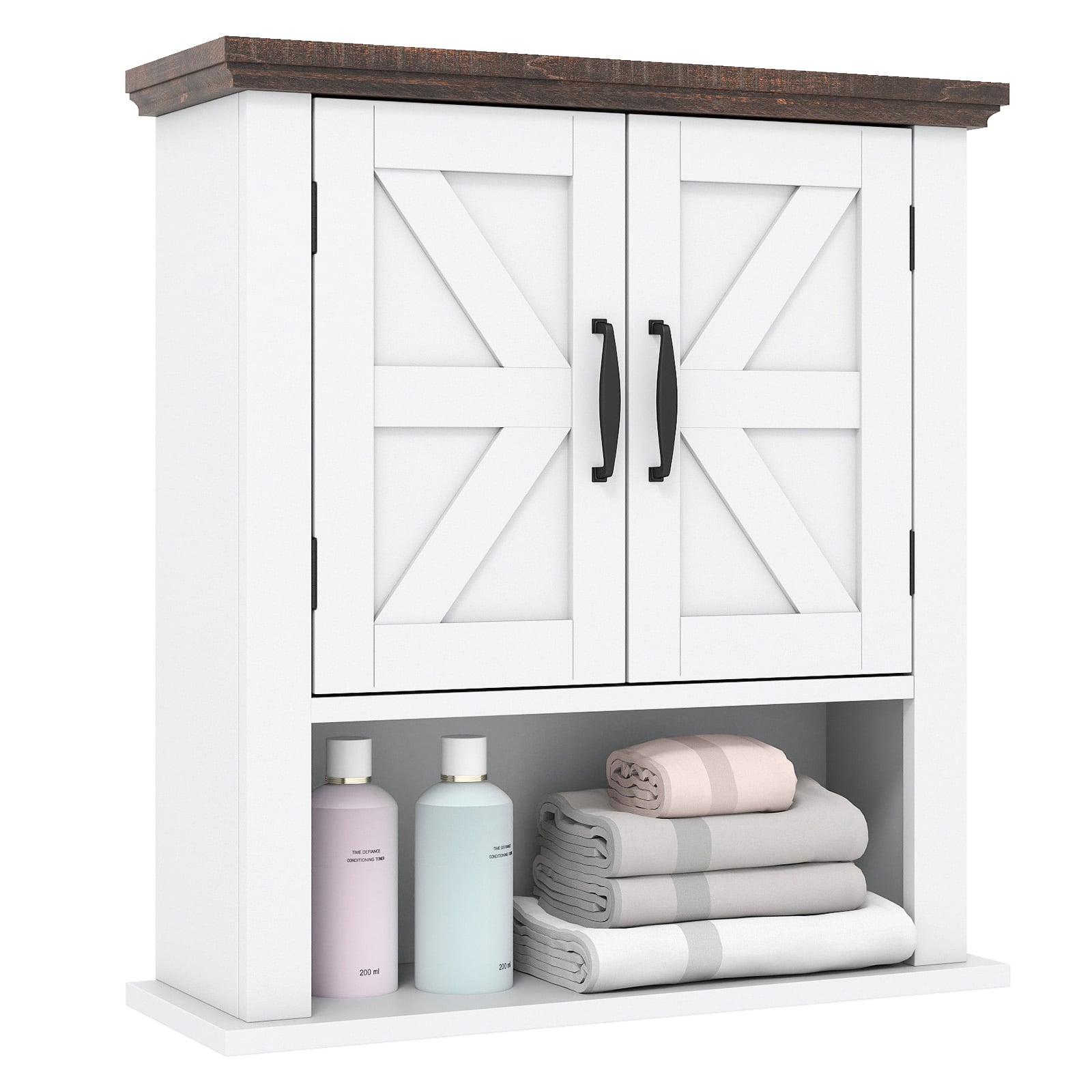 Costway Λευκό Κρεμαστό Ντουλάπι με Ρυθμιζόμενα Ράφια, Πόρτες και Ανοικτό Χώρο Αποθήκευσης 60 x 19 x 55 cm JV12880WH