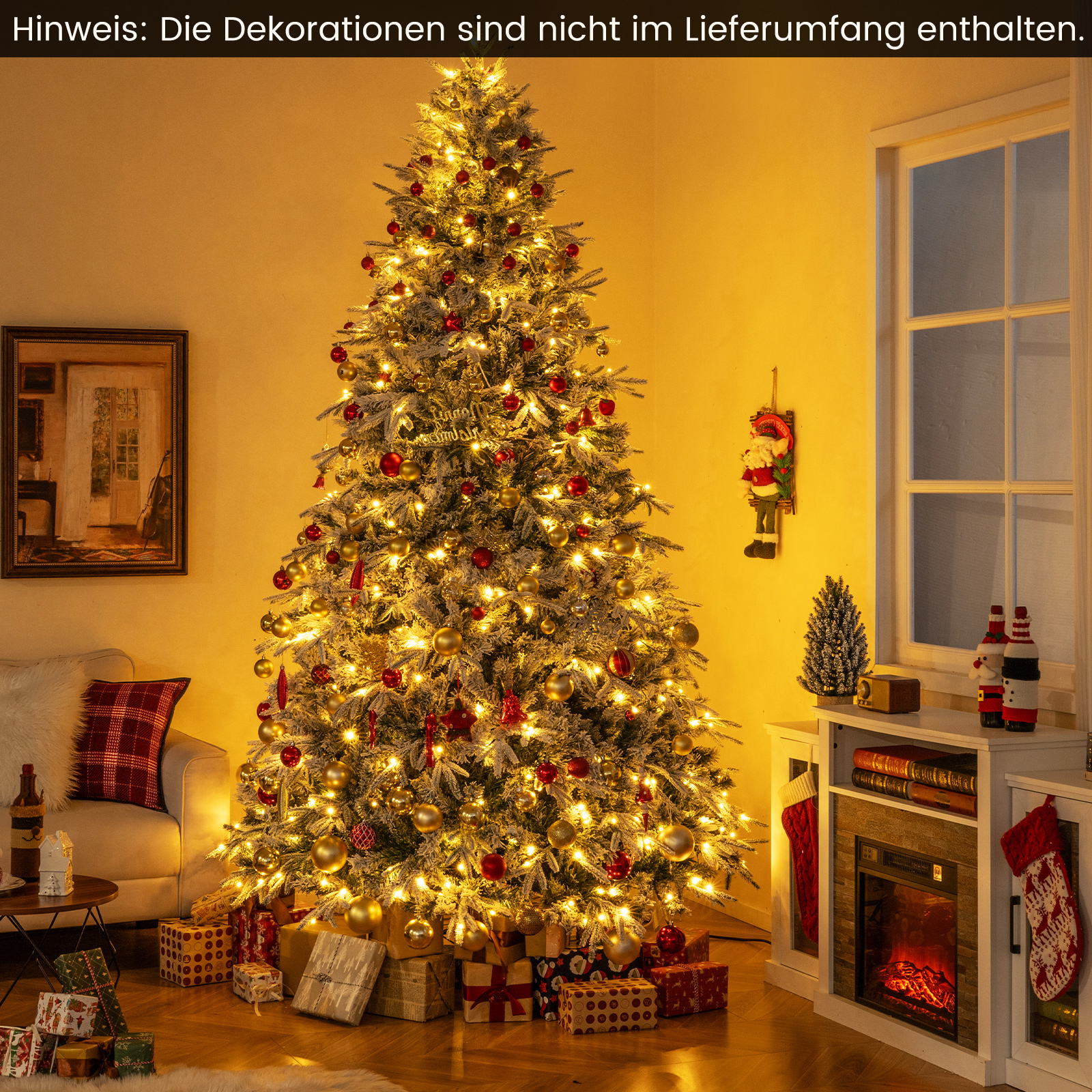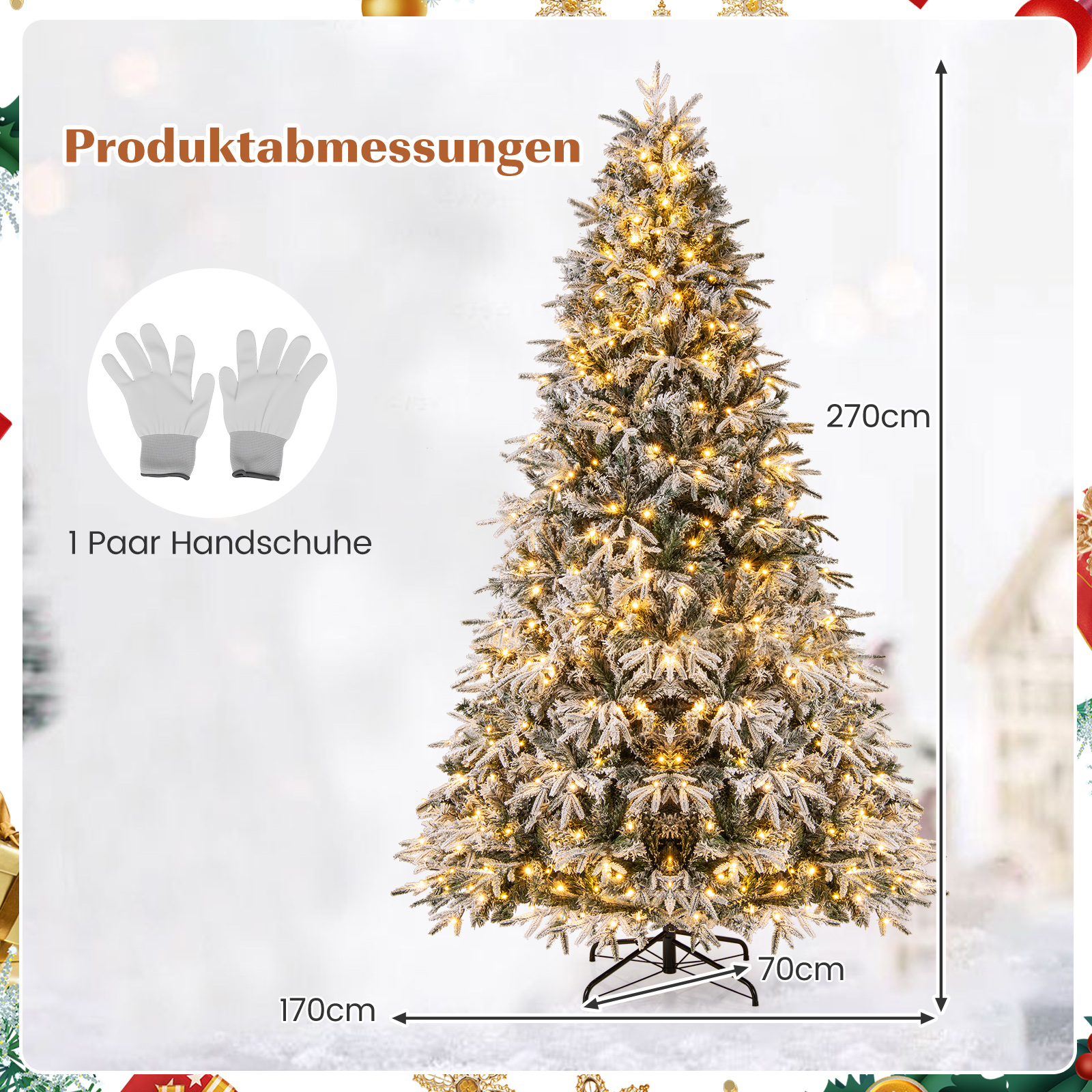 Costway 270 εκ Τεχνητό Χριστουγεννιάτικο Δέντρο με Φωτισμό και Χιόνι, Έλατο με Θερμόλευκα LED Φώτα CM25199DE-9