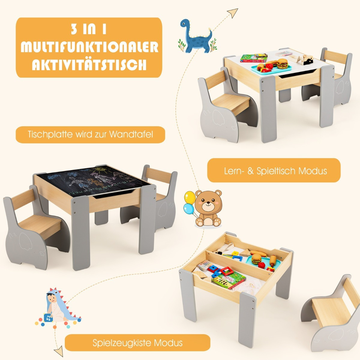 Costway Σετ Τραπέζι και Καρέκλες 4-σε-1 για Παιδιά με Αποθηκευτικό Χώρο και Αναστρέψιμες ΕπιφάνειεςHY10500GR