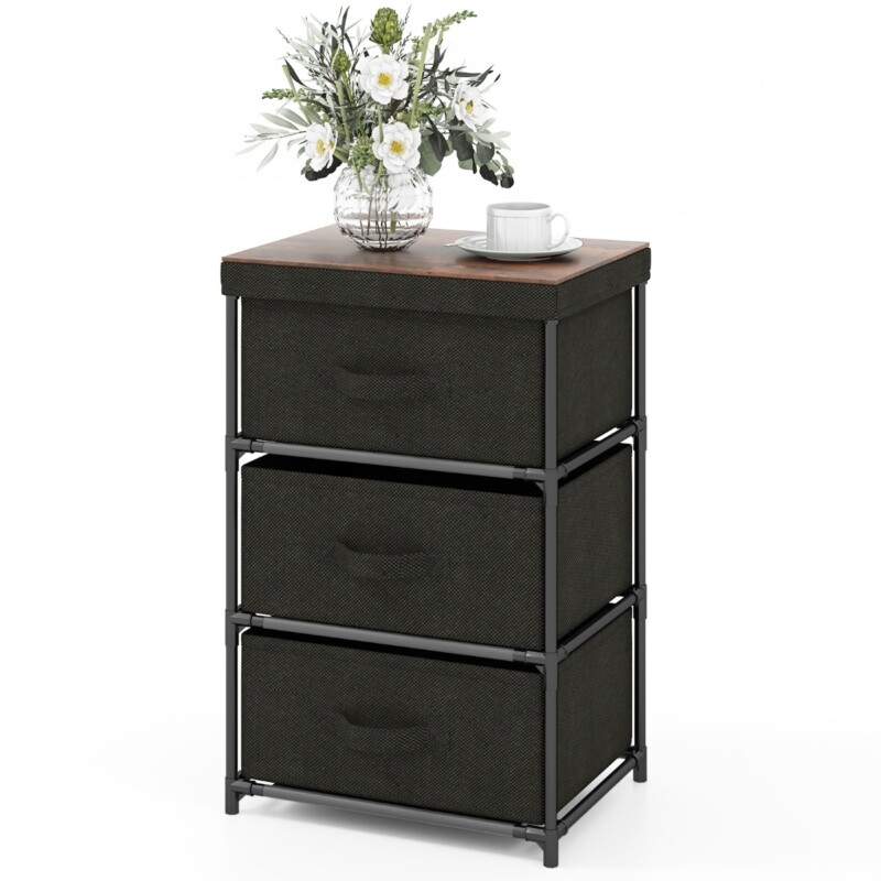 Costway Κομοδίνο με Υφασμάτινα Συρτάρια και Μεταλλικό Σκελετό Μαύρο 40 x 30 x 62 εκ. JZ10129BK