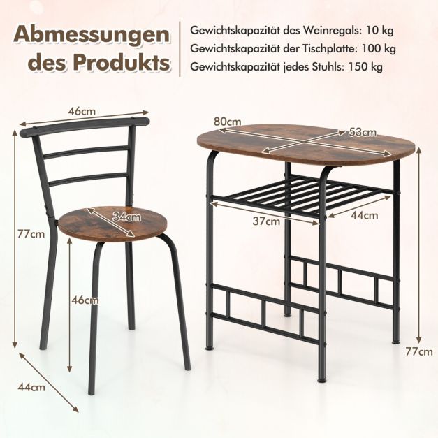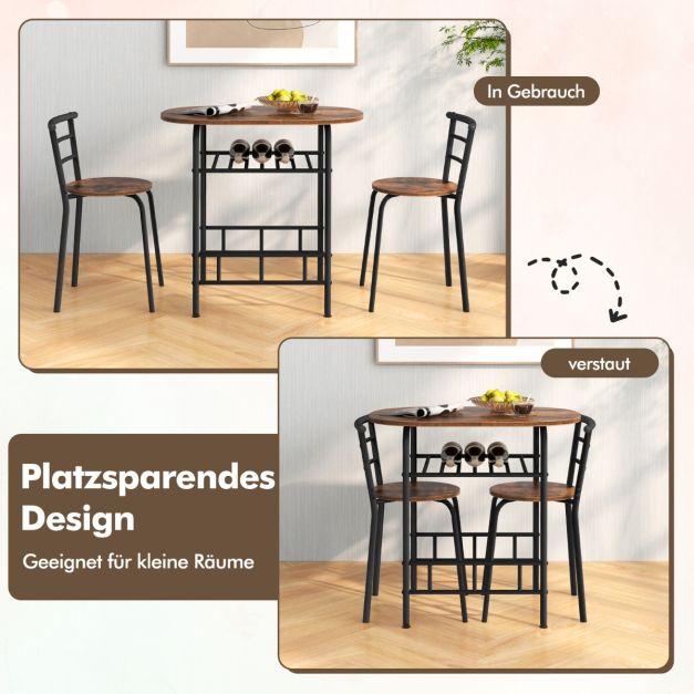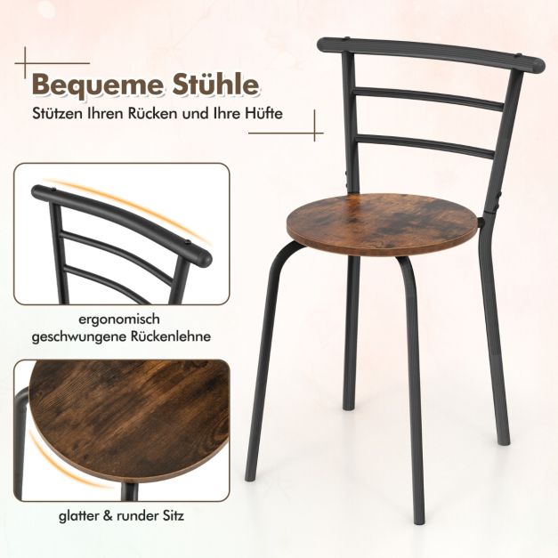 Σετ Τραπεζι και Καρέκλες 3τμχ Χρώματος Ρουστίκ Καφέ COSTWAY KC56713CF