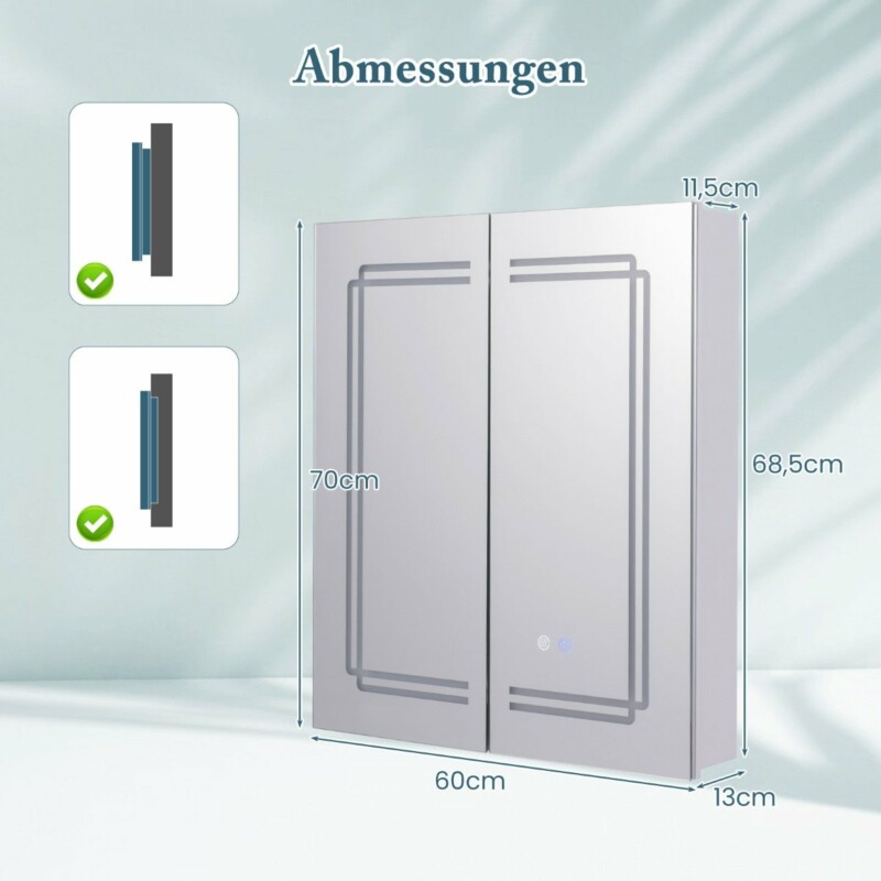 Costway LED Φωτιζόμενο Ντουλάπι Μπάνιου με Ρυθμιζόμενο Φωτισμό και Αντιθαμβωτική Λειτουργία BA8162DE