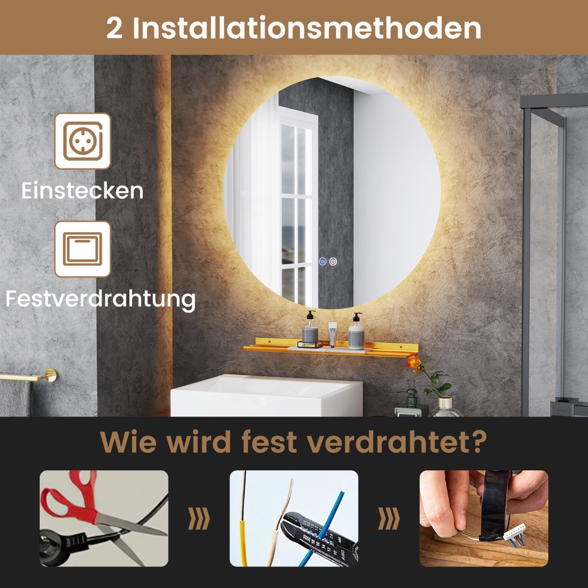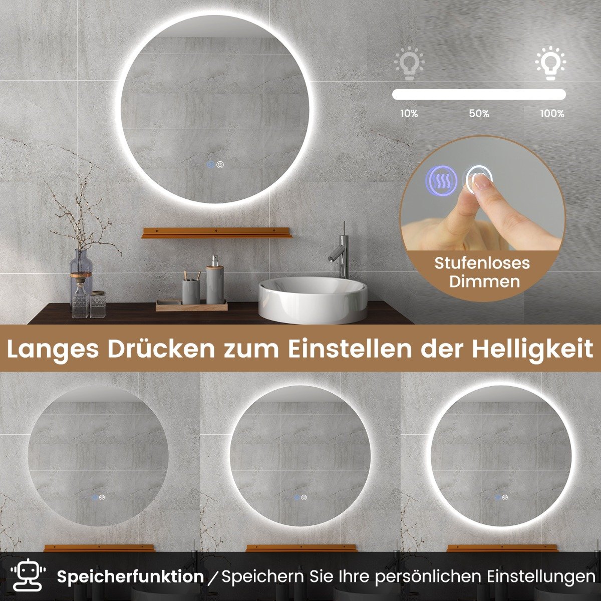 - Λειτουργία μνήμης: Ξεχάστε τη συνεχή ρύθμιση των ρυθμίσεων φωτός. Ο στρογγυλός καθρέφτης μπάνιου επαναφέρει αυτόματα την προτιμώμενη φωτεινότητα και χρώμα σας, ώστε η επιθυμητή ατμόσφαιρα να επανέλθει αμέσως.