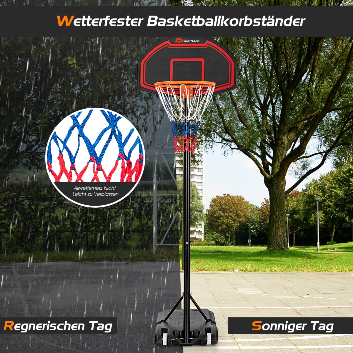 - Στήριγμα καλαθιού μπάσκετ για όλες τις καιρικές συνθήκες, τόσο για ηλιόλουστες όσο και για βροχερές ημέρες