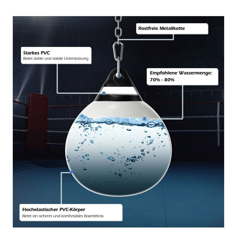 Ο σάκος μποξ νερού, από την εταιρία Costway, αξιοποιώντας τη δύναμη του νερού, σας προσφέρει μια άνετη εμπειρία πυγμαχίας. Με μοναδικό σχήμα σταγόνας και σώμα από ανθεκτικό PVC, ταλαντεύεται ευθεία και τοξωτά, προσομοιώνοντας την ευθεία και αιωρούμενη επίθεση με τη γροθιά σας για να εξασκηθείτε στην αποφυγή. Μπορεί να χρησιμοποιηθεί με βάση μποξ, σε τοίχο ή στην οροφή και γεμίζει και αδειάζει εύκολα και γρήγορα.