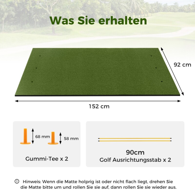 Costway Στρώμα γκολφ με 2 λαστιχένια μπαστούνια, 2 ράβδους ευθυγράμμισης, 6 θέσεις εκκίνησης, 152 x 92 cm, πάχος 20 mm. SP38077