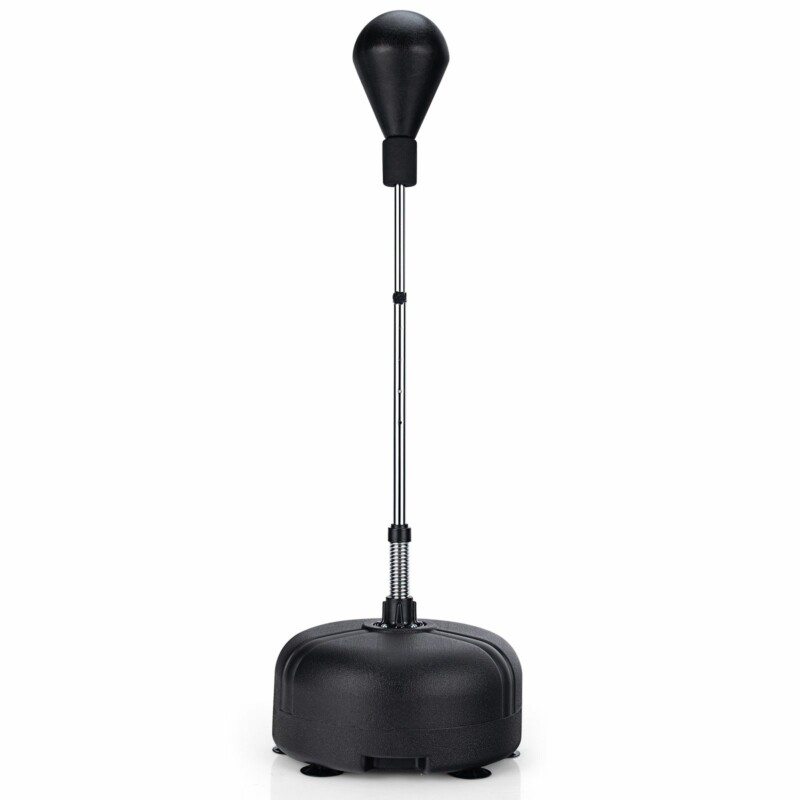 Η επιδαπέδια μπάλα πυγμαχίας, από την εταιρείας Costway, είναι ιδανική για όλη την οικογένεια. Μπορεί να ρυθμιστεί σε 4 ύψη (140/146/152/158 cm), καθιστώντας την κατάλληλο τόσο για παιδιά όσο και για ενήλικες. Η βάση μπορεί να γεμίσει με 28 κιλά νερό ή 32 κιλά άμμο για αυξημένη σταθερότητα, ενώ οι βεντούζες παρέχουν εξαιρετική σταθερότητα σε οποιαδήποτε επιφάνεια. Το υλικό PU είναι ανθεκτικό και μακράς διαρκείας, ενώ τα ελατήρια εξασφαλίζουν άμεση επαναφορά του σάκου στη θέση του. Η βάση μπορεί να αποθηκευτεί εύκολα, ενώ οι λαβές διευκολύνουν τη μεταφορά για να μπορείτε να το μετακινήσετε παντού!