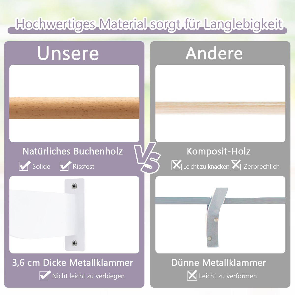 • Φυσικό ξύλο οξιάς για μεγάλη διάρκεια ζωής