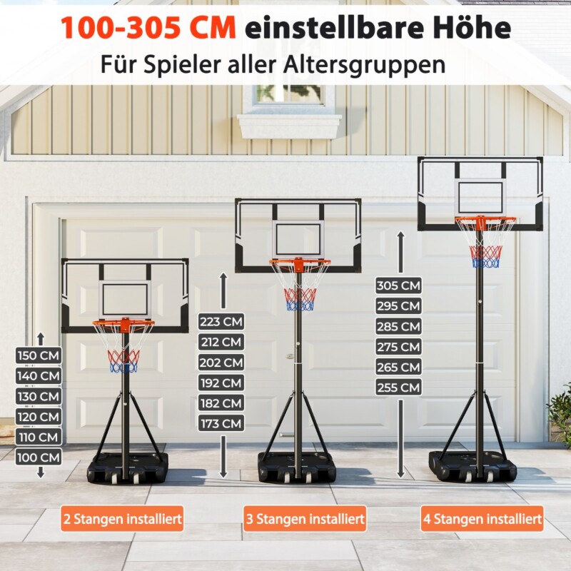 Αυτό το φορητό σύστημα μπάσκετ διαθέτει ρυθμιζόμενο ύψος από 1 έως 3 μέτρα, προσαρμοσμένο για παίκτες όλων των ηλικιών και επιπέδων δεξιότητας. Το ανθεκτικό πίσω ταμπλό και η ισχυρή στεφάνη έχουν σχεδιαστεί για μακροχρόνια αντοχή, ενώ η σταθερή βάση, που μπορεί να γεμιστεί με άμμο ή νερό, εξασφαλίζει ασφάλεια κατά τη διάρκεια του παιχνιδιού. Με Φορητή Βάση και Ολοκληρωμένες Ρόδες, αυτό το σύστημα μπάσκετ προσφέρει ευελιξία και ευκολία παιχνιδιού σε διάφορες τοποθεσίες.