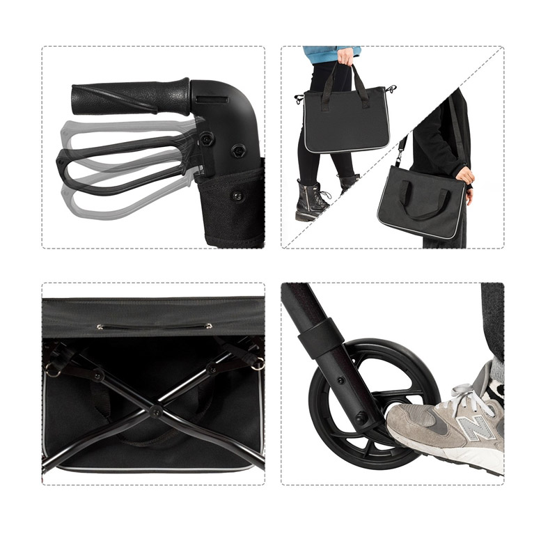 Ο περιπατήρας, βοηθά τους ηλικιωμένους και τους τραυματίες να περπατούν και να ενισχύουν τα πόδια τους. Όταν κουραστούν, μπορούν να ενεργοποιήσουν το φρένο για να κλειδώσουν τους τροχούς και να καθίσουν για να ξεκουραστούν. Το αναπνεύσιμο κάθισμα και η πλάτη σας κάνουν να νιώθετε πιο άνετα όταν κάθεστε. Οι εργονομικές και αντιολισθητικές λαβές ρυθμίζονται σε 6 ύψη ανάλογα με το ύψος του χρήστη. Το πεντάλ βοήθειας και το σύστημα διπλού φρένου αυξάνουν την ασφάλεια και τη σταθερότητα. Διαθέτει αποσπώμενη τσάντα με ρυθμιζόμενους σε ύψος ιμάντες και μια βάση για ομπρέλα ή πατερίτσες.