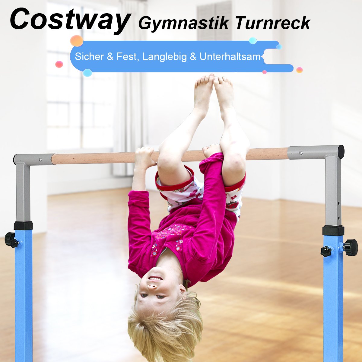 Costway Γυμναστική Ράβδος Ρυθμιζόμενου Ύψους Ανθεκτική Μπλε/Ροζ SP37169BL