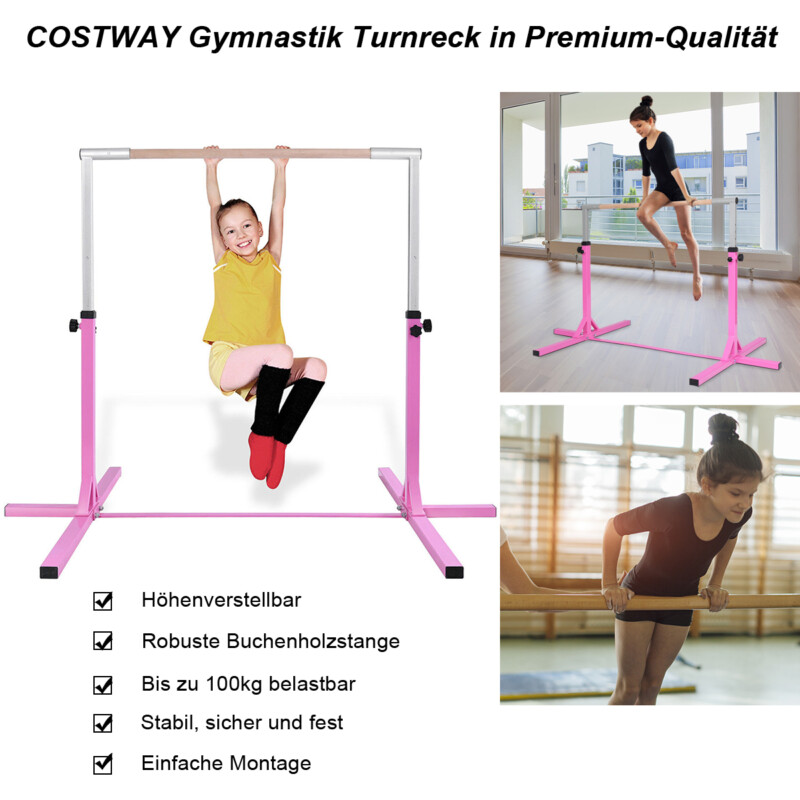 Costway Γυμναστική Ρυθμιζόμενη Μπάρα Ροζ/Μπλε-Ροζ SP37169FS