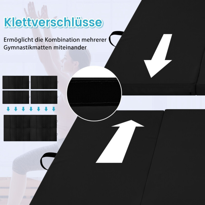 Costway Πτυσσόμενο Στρώμα Ασκήσεων 240x120x5 cm με Βέλκρο & 2 Χειρολαβές Μαύρο SP36183BK