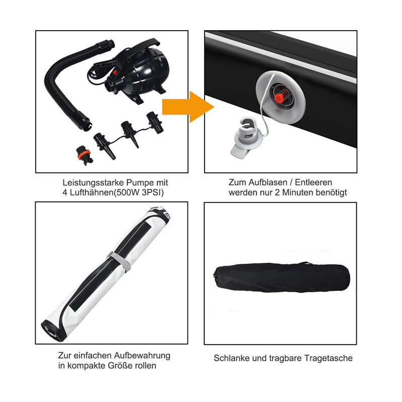 Με τους ιμάντες velcro μπορείτε να συνδέσετε πολλά στρώματα μαζί για να δημιουργήσετε περισσότερο χώρο για αθλήματα. Σε αντίθεση με άλλα συνηθισμένα στρώματα, διαθέτει δακτυλίους D που επιτρέπουν στα στρώματα να συνδέονται μεταξύ τους και στις δύο πλευρές. Μπορεί εύκολα να ξεφουσκώσει και να τυλιχτεί σε συμπαγές και κυλινδρικό σχήμα. Είναι επίσης αρκετά εύκολο στη μεταφορά με τσάντα μεταφοράς. Μπορεί να τοποθετηθεί στο πάτωμα του σπιτιού ή του γυμναστηρίου κατά τη διάρκεια προπόνησης υψηλών επιδόσεων, όπως ποδήλατο, πολεμικές τέχνες, γυμναστική και γιόγκα. Επιπλέον, μπορείτε να τα χρησιμοποιήσετε και στην παραλία, στον κήπο, στο γκαζόν ή ακόμα και στο νερό.