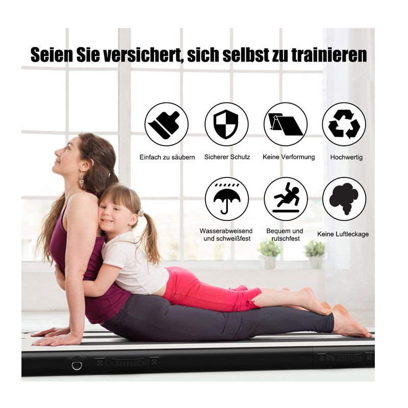 Φουσκωτό Στρώμα Γυμναστικής με Αντλία Αέρος 100 x 300 x 10 cm Χρώματος Μαύρο Costway SP37188DE-DS