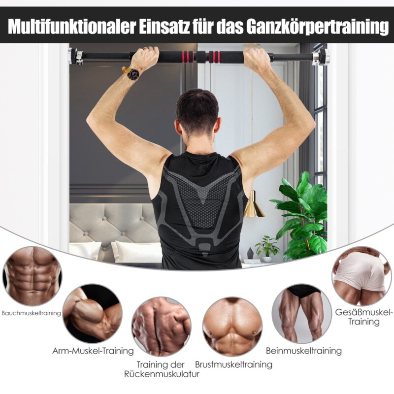 - Πολλαπλή χρήση: Η μπάρα μπορεί να χρησιμοποιηθεί για διάφορες ασκήσεις, όπως έλξεις. Έτσι, ενισχύονται οι μύες όλου του σώματος, είτε πρόκειται για την πλάτη είτε για τα χέρια.