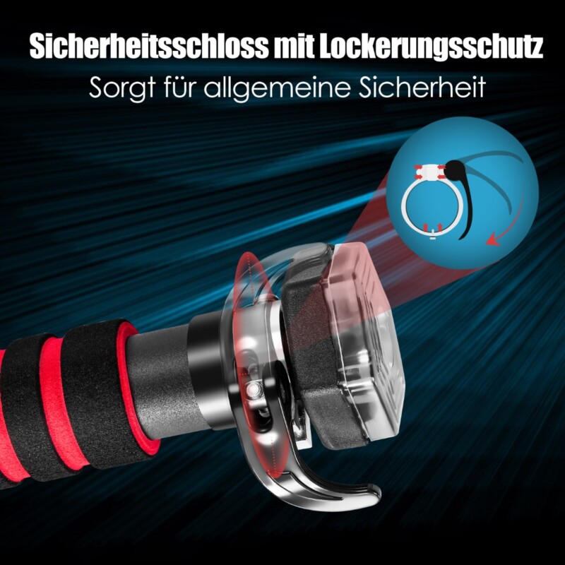 - Ανθεκτική μπάρα με κλείδωμα: Αυτή η μπάρα έλξεων από μέταλλο μπορεί να αντέξει έως και 120 κιλά, καθιστώντας την ανθεκτική και κατάλληλη για πολυετή χρήση. Επιπλέον, μπορεί να κλειδωθεί μετά την προσαρμογή του μήκους, ώστε να μην χαλαρώνει κατά τη χρήση.