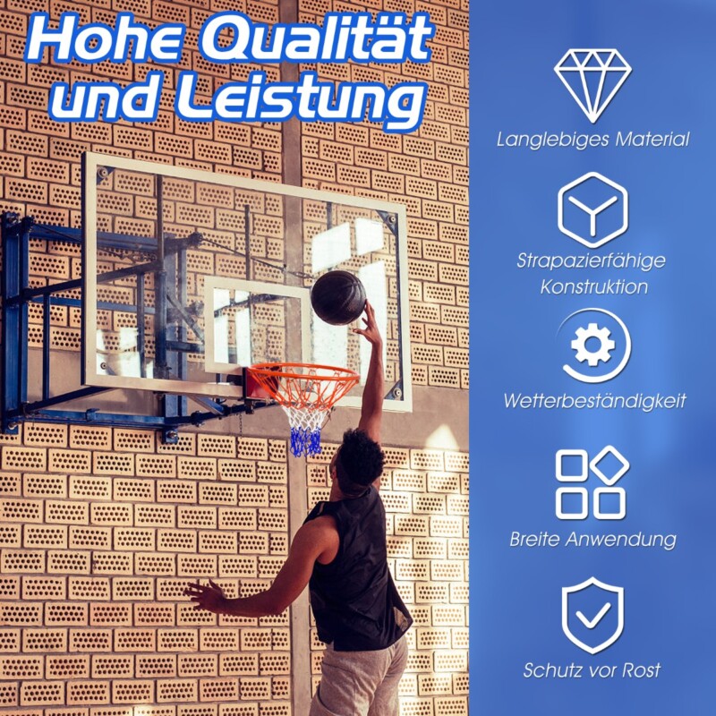 • Ανθεκτικό καλάθι: Αυτό το καλάθι μπάσκετ διαθέτει ανθεκτικό πλαίσιο από ατσάλι με επίστρωση πούδρας, καθιστώντας το πολύ ανθεκτικό στις καιρικές συνθήκες. Το δίχτυ δεν μπορεί να μπλεχτεί στο πλαίσιο και είναι επίσης πολύ ανθεκτικό!